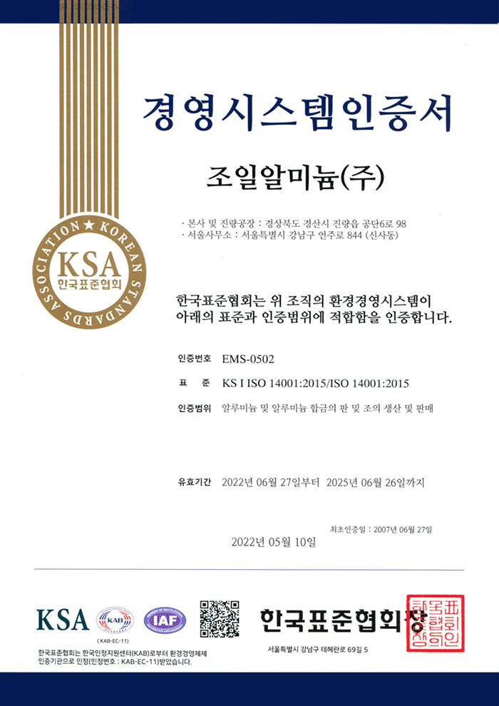 - 환경경영시스템 (ISO 14001)인증 및 환경정보공개제도 시행