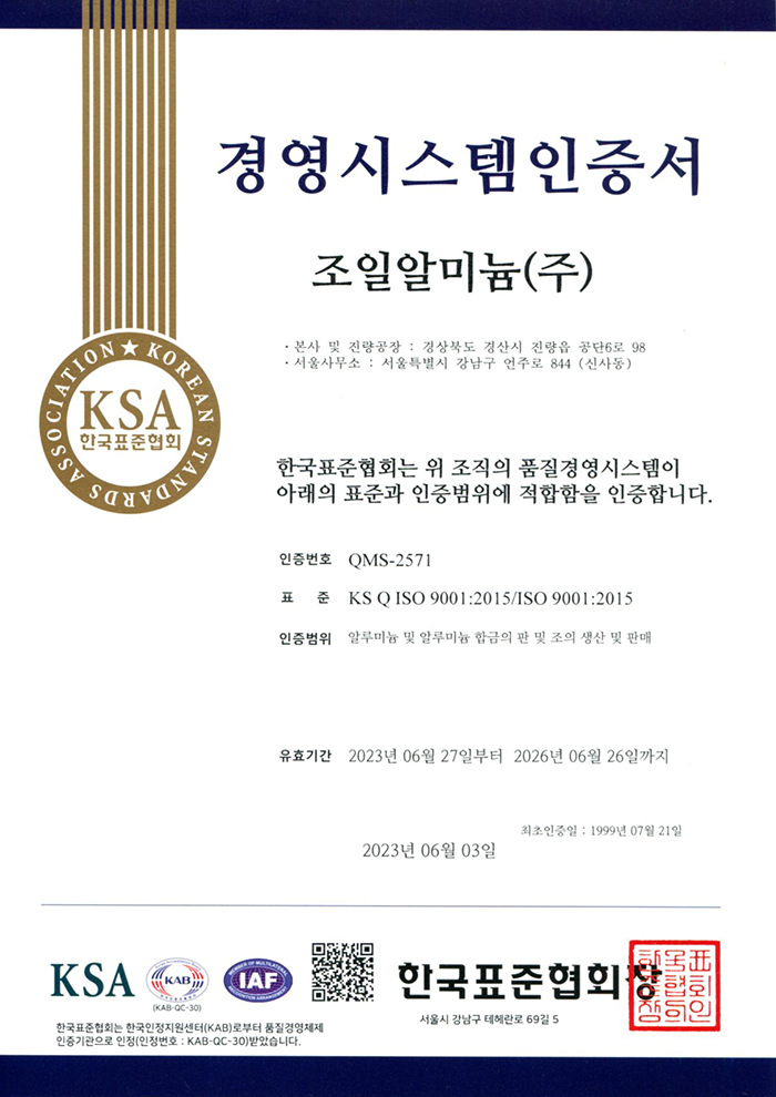 품질경영원칙을 준수하여 합리적 경영과 고객만족을 추구하고 정기적으로 지속적인