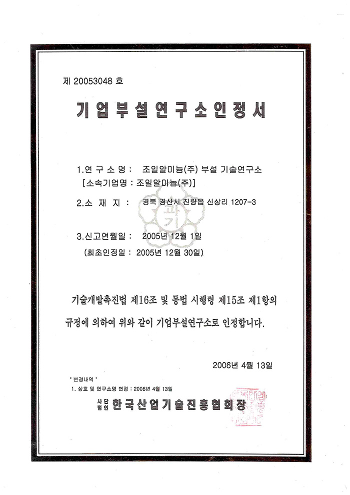 • 기업부설연구소 인정서